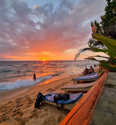 Beachfront Bliss, located on Hikkaduwa Beach, offers a perfect blend of delicious dining and comfortable rooms with stunning ocean views.